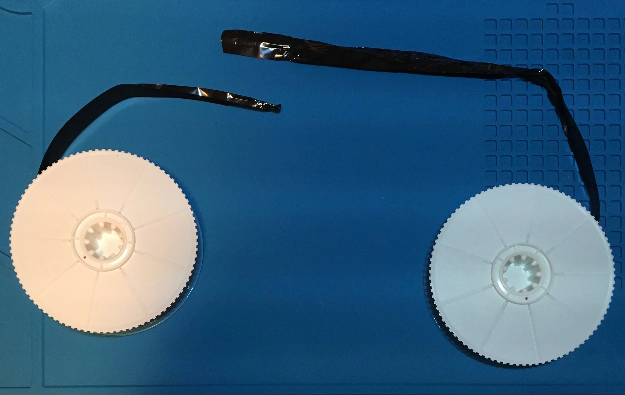 Note: The standard tape speed for playback is 3.335 cm/s. In this restoration the damaged section was roughly 20cm so only about 6 seconds of the 1 hr 37 min movie were lost.